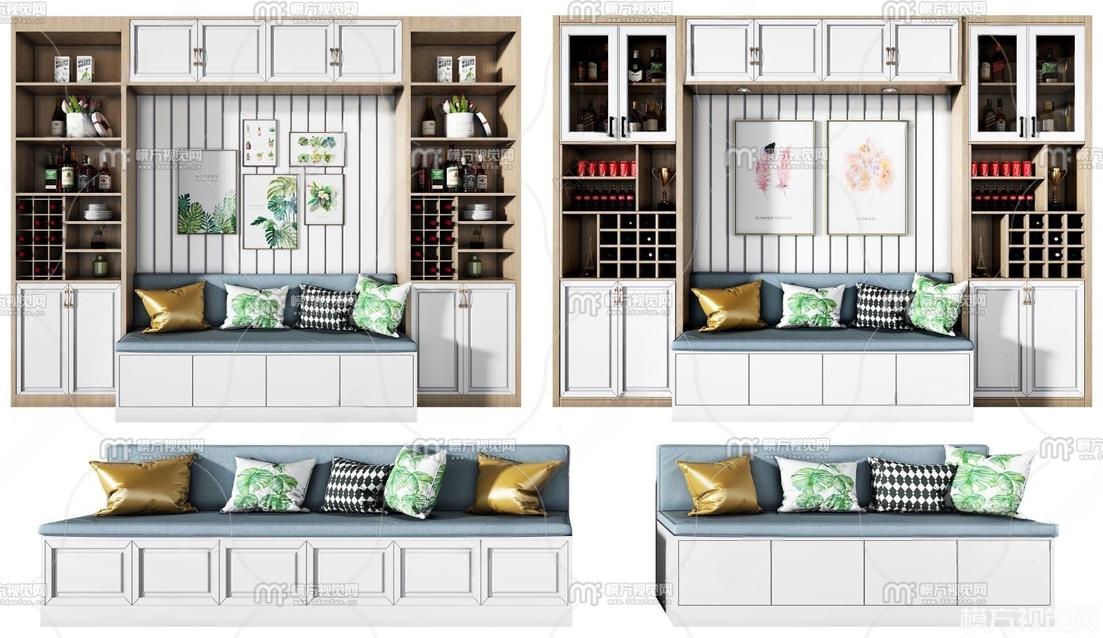 现代沙发卡座装饰柜3D模型(ID:0009064)