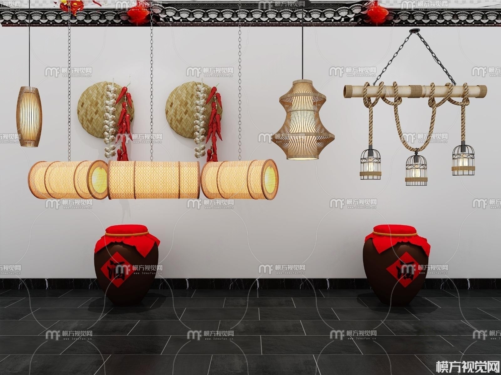 中式编织吊灯组合3D模型(ID:0000091)
