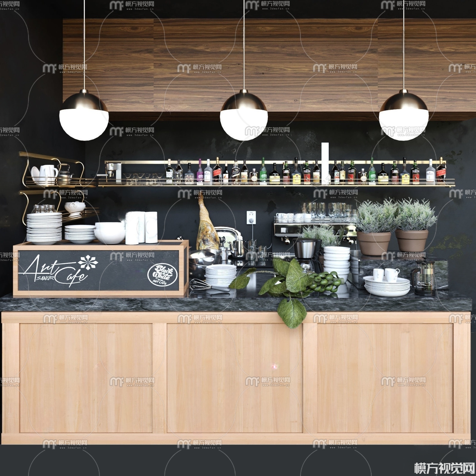 现代咖啡馆大理石吧台3D模型(ID:0009111)
