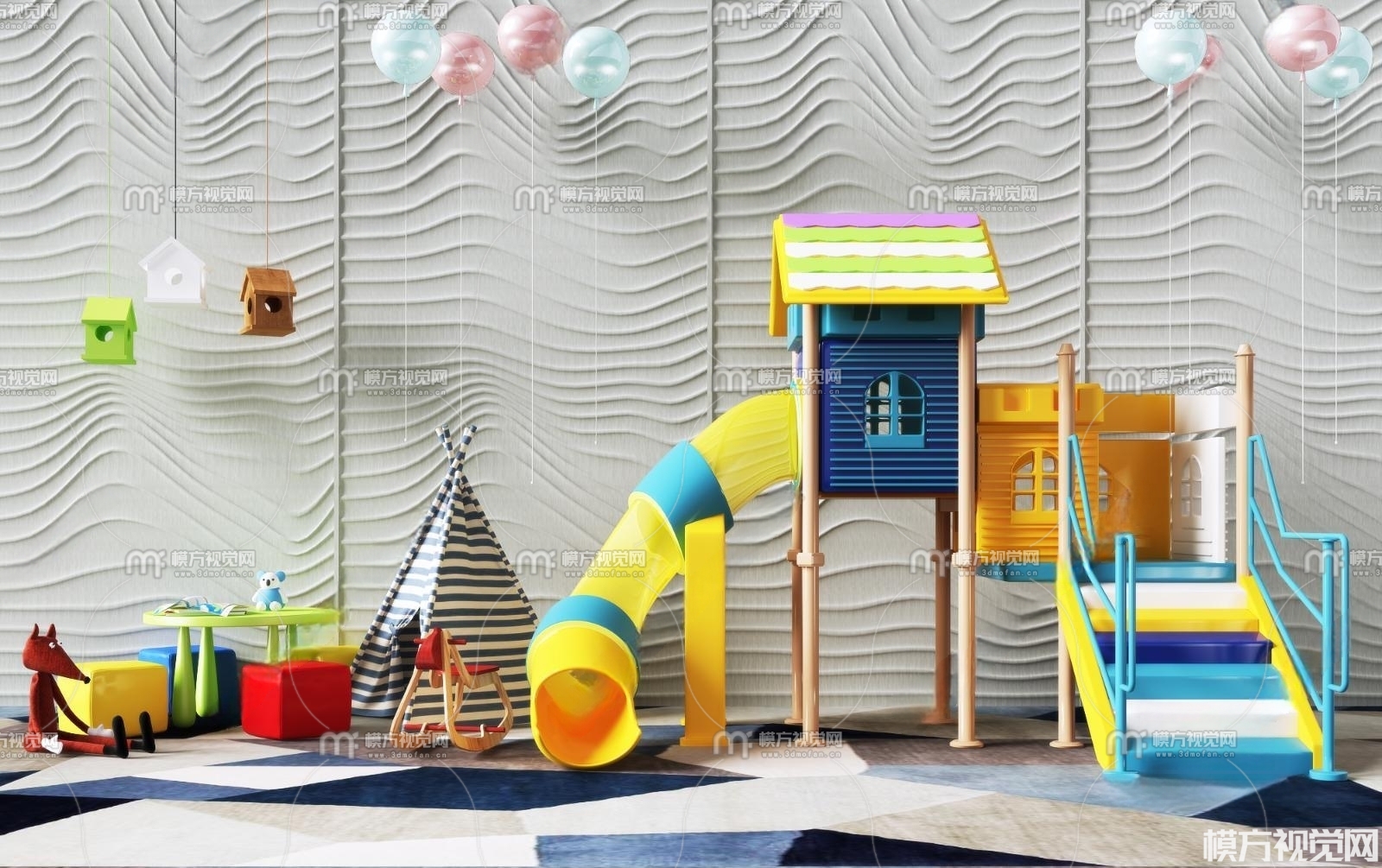 儿童滑滑梯 游乐设施3D模型(ID:0009173)