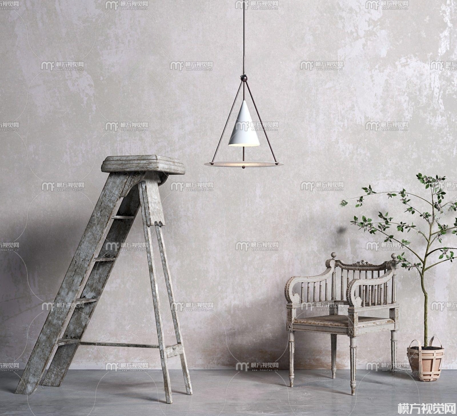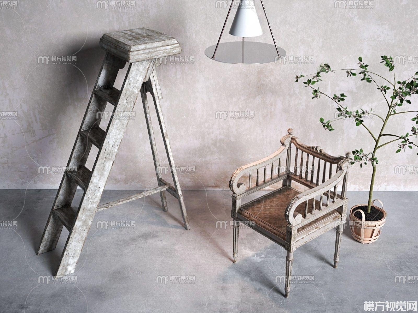 现代休闲椅 梯子 盆栽3D模型(ID:0009183)
