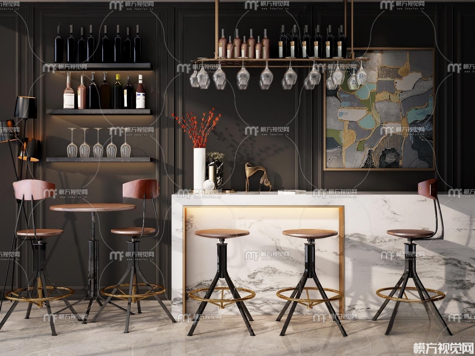 现代吧台桌椅 酒架3D模型(ID:0009222)