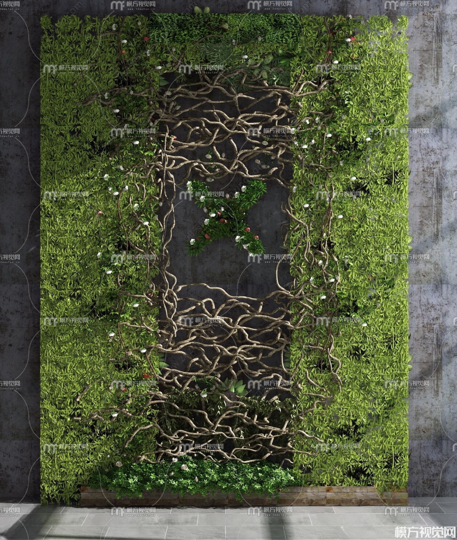 现代植物墙3D模型(ID:0009326)
