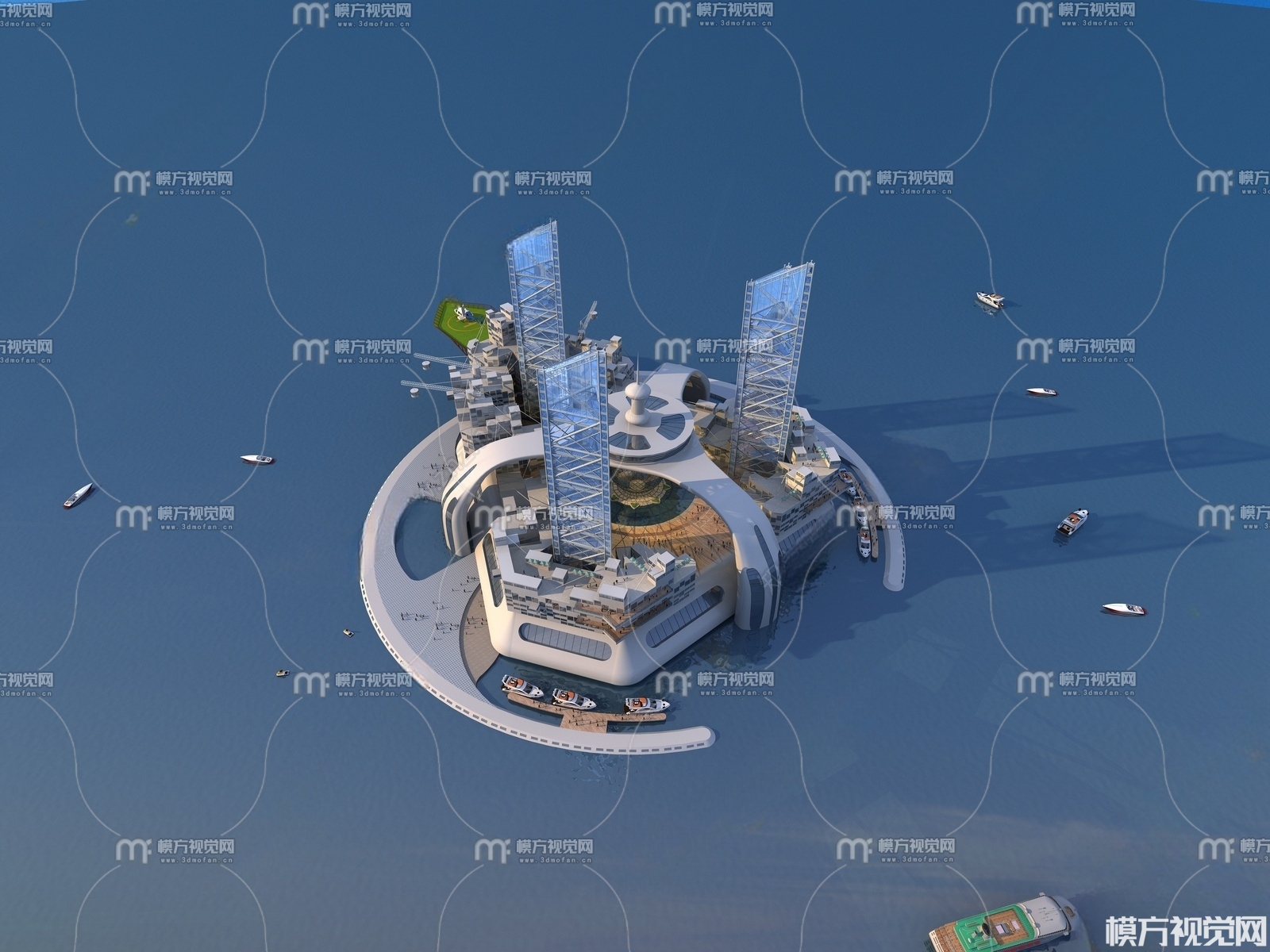 现代海上建筑鸟瞰3D模型(ID:0009418)