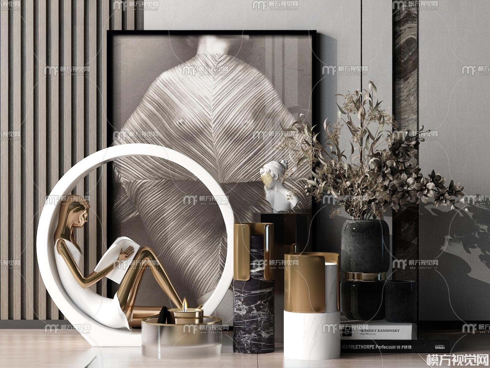 现代装饰画 饰品摆件组合3D模型(ID:0009475)