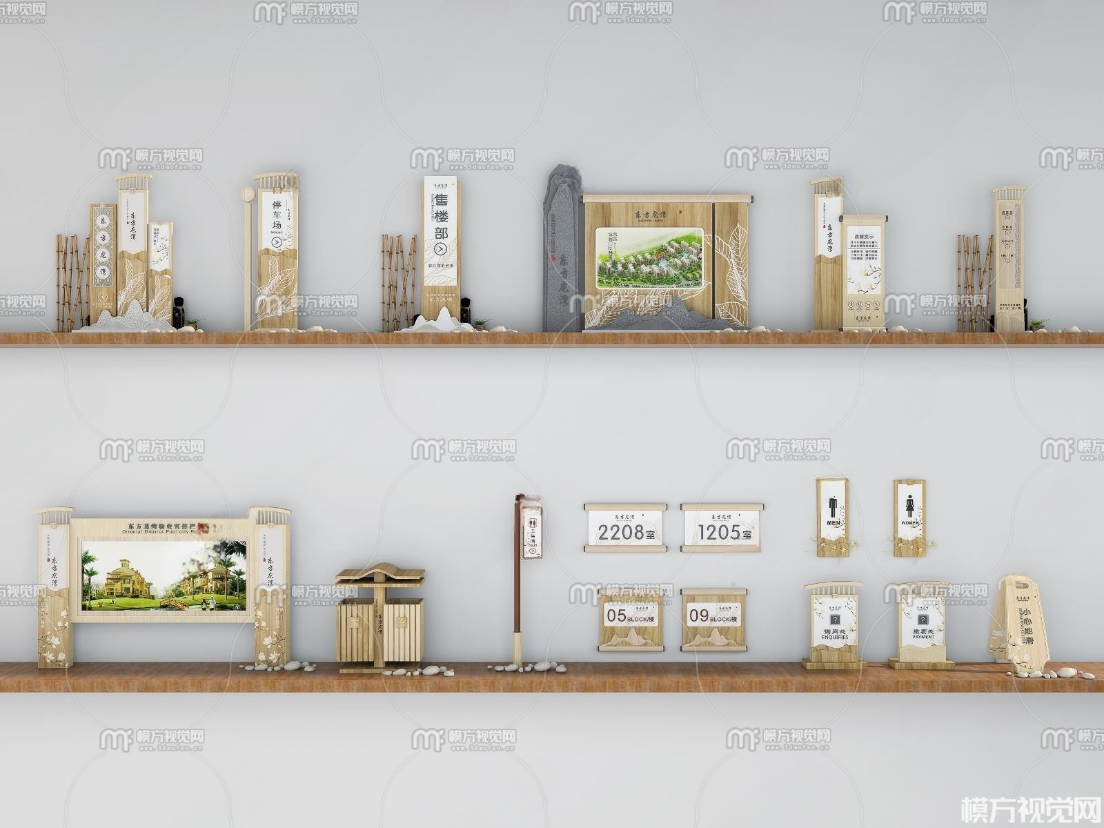新中式指示牌标识牌宣传栏3D模型(ID:0009488)