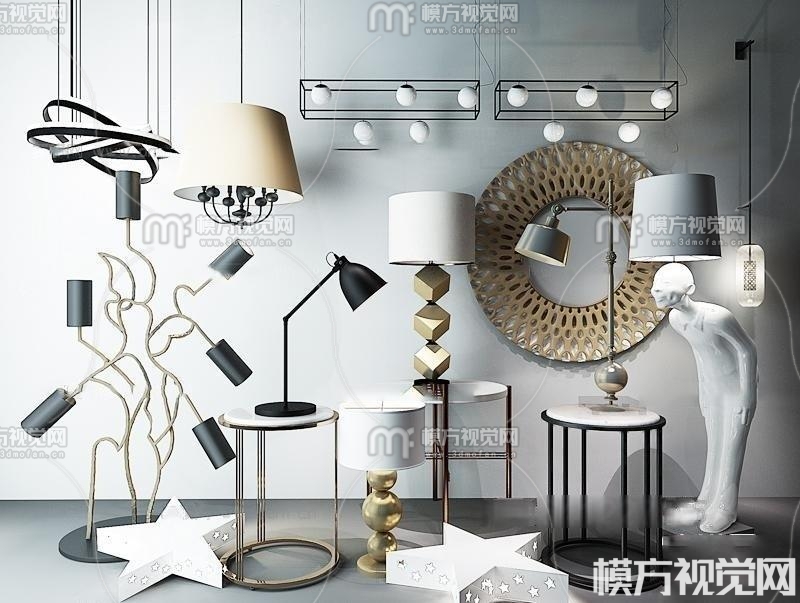 现代吊灯落地灯组合3D模型(ID:0000095)