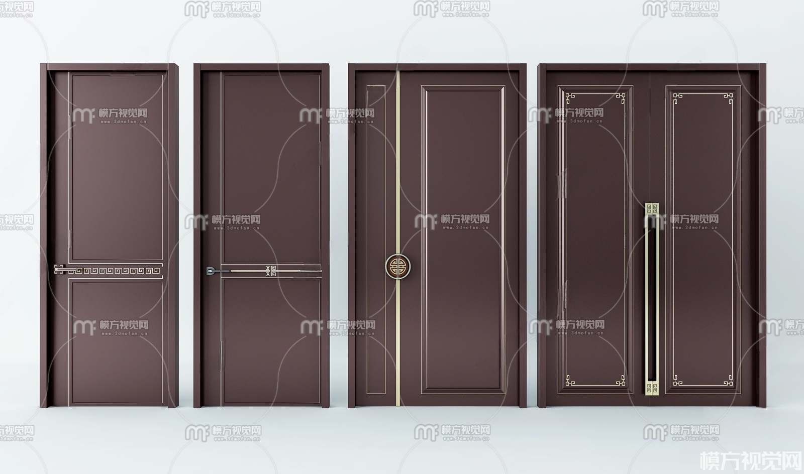 新中式双开门单开门3D模型(ID:0009505)