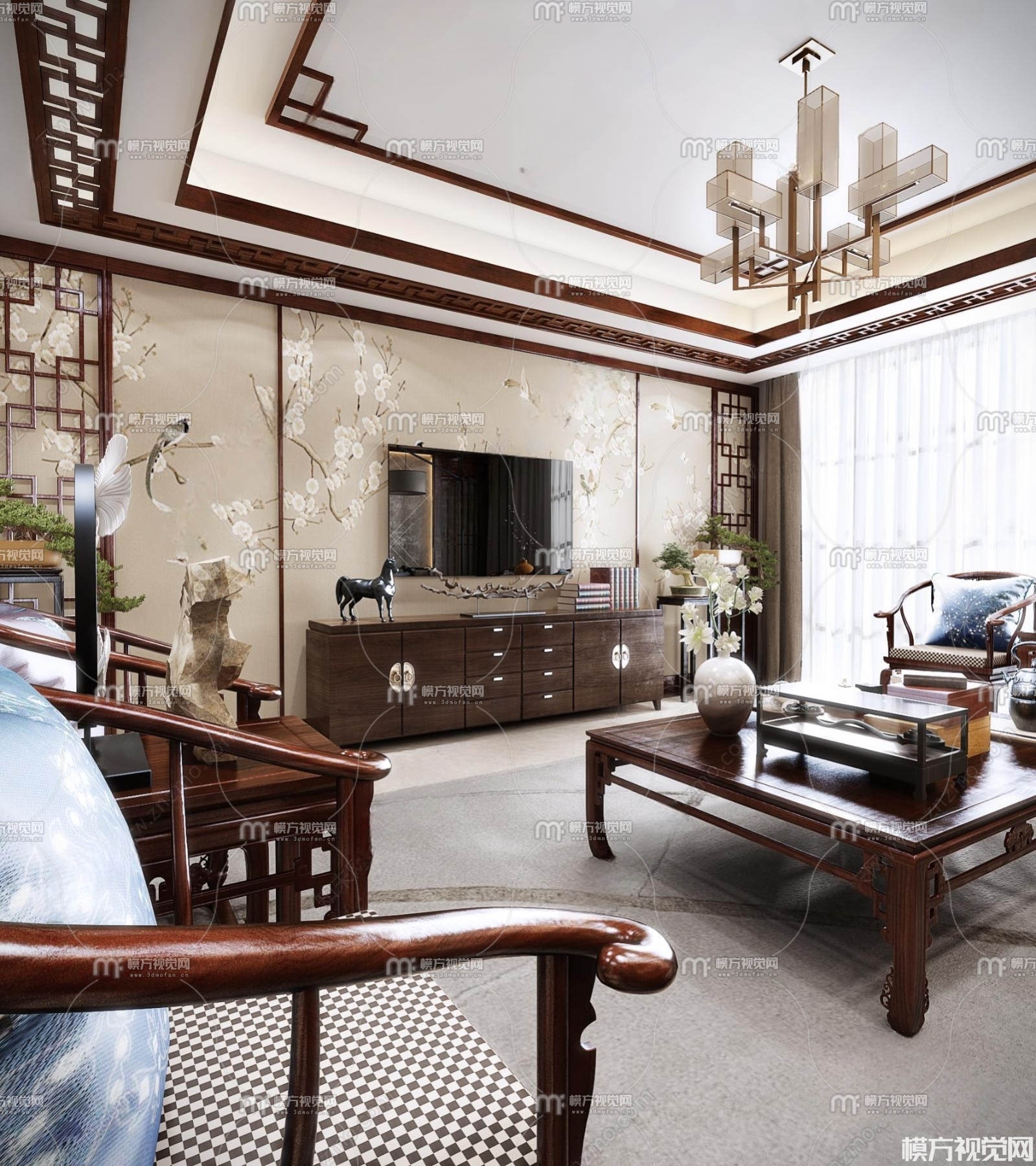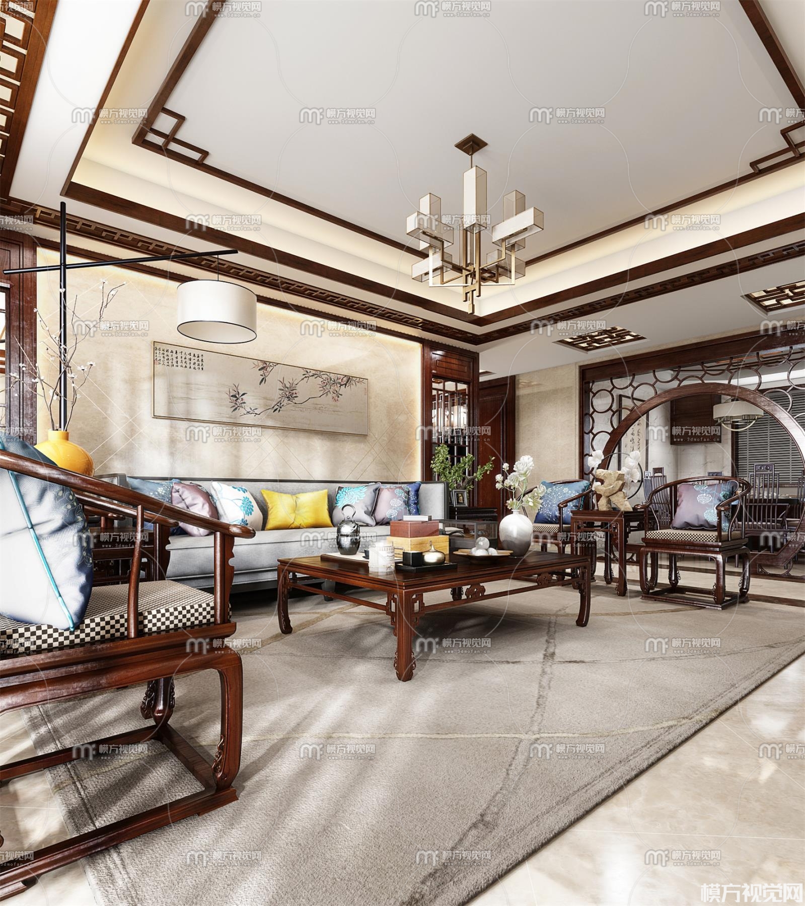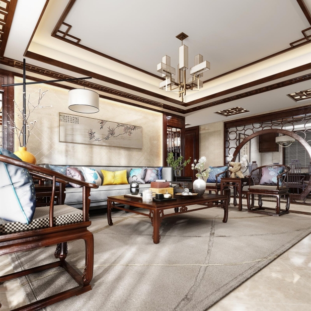 新中式客厅3D模型(ID:0009522)