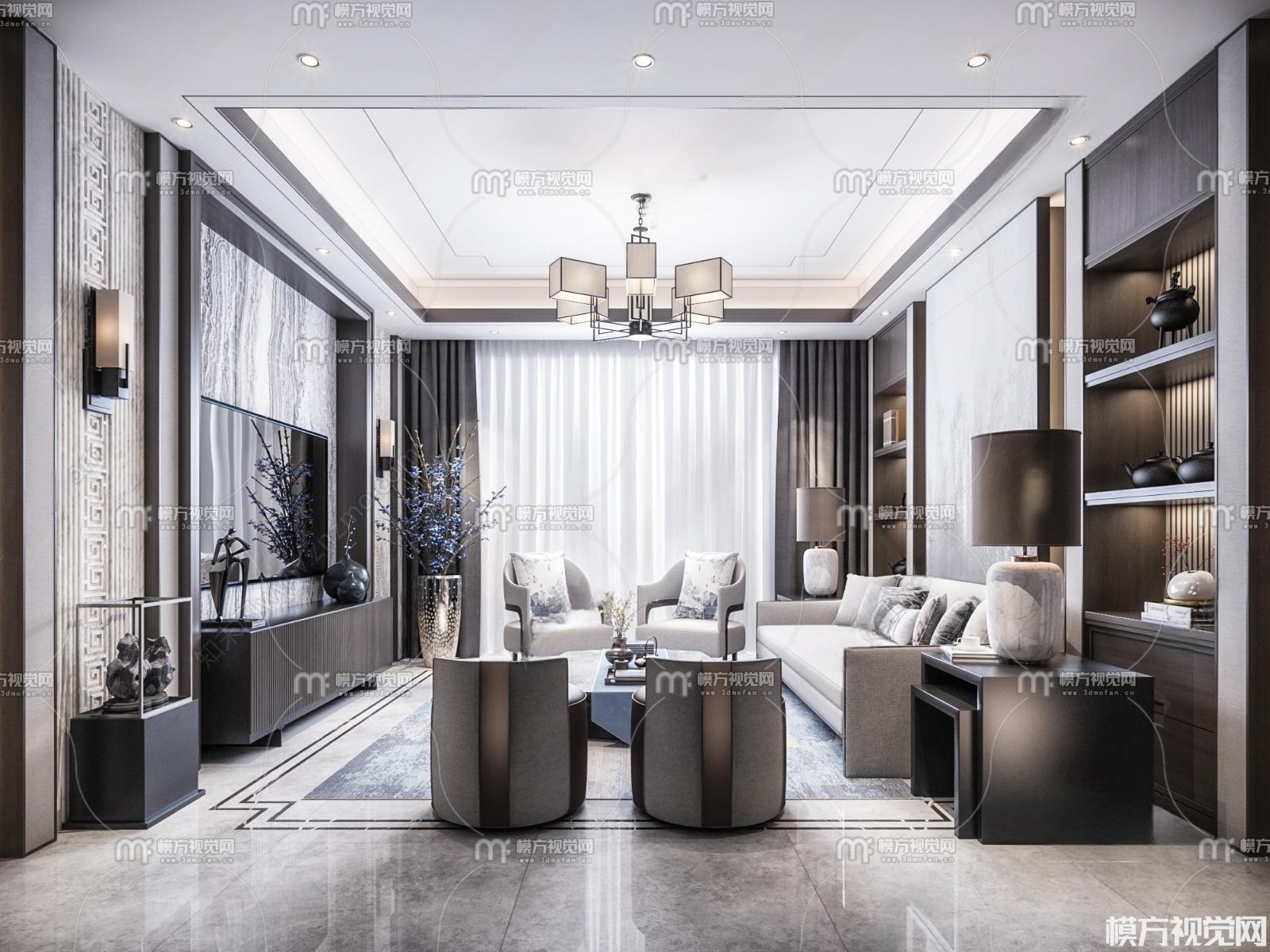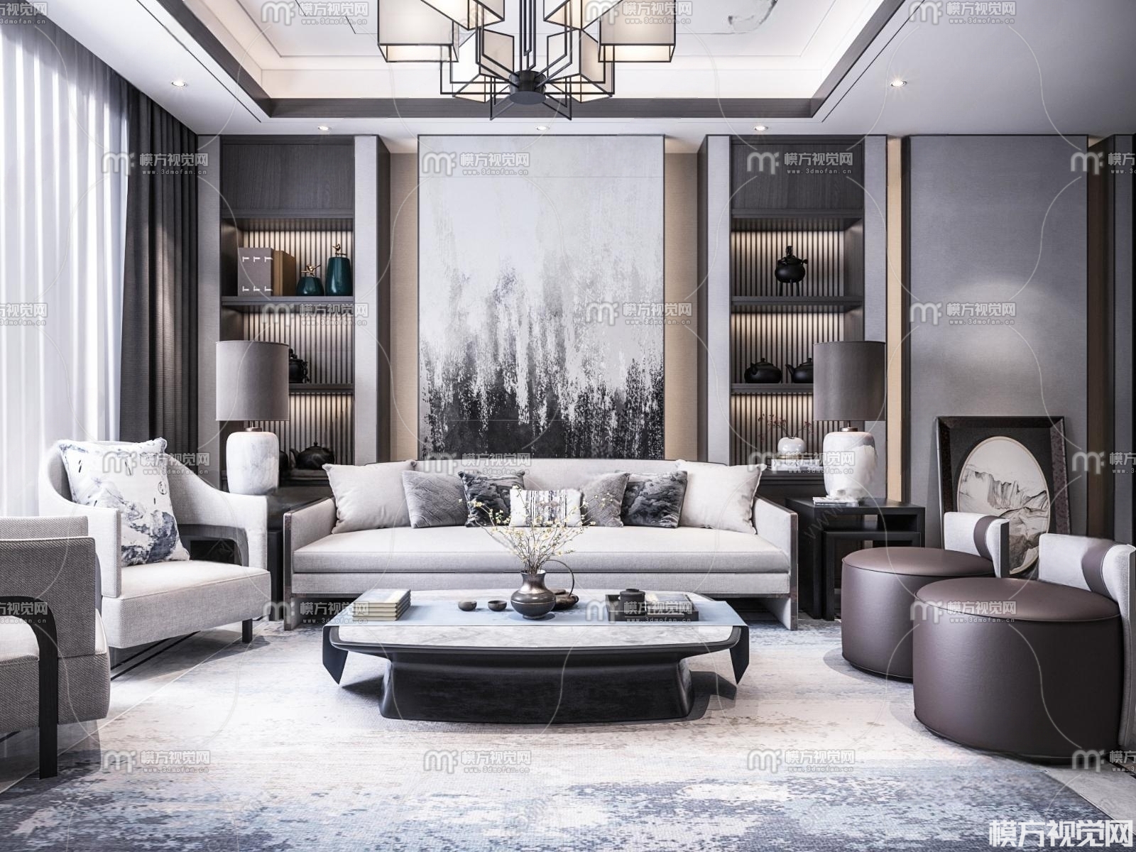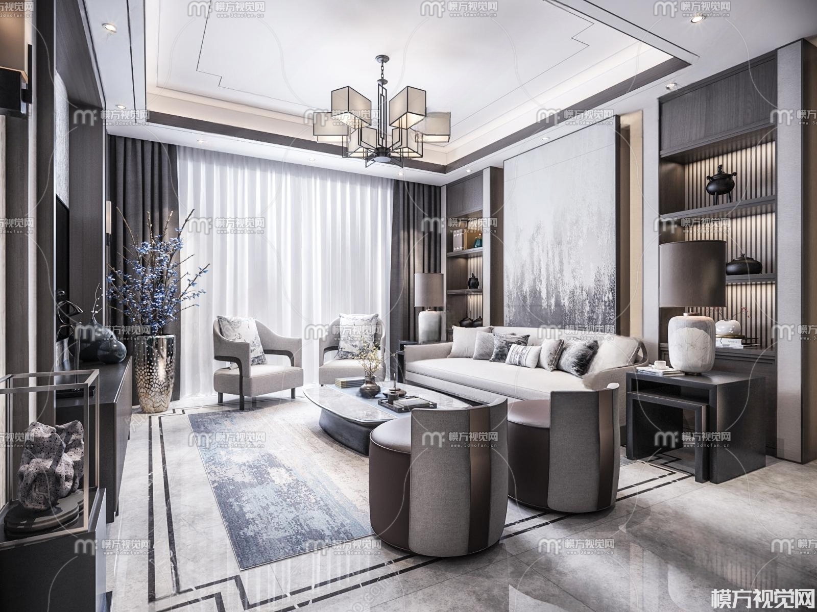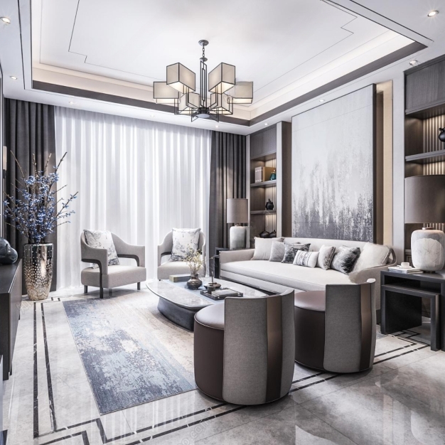 新中式客厅3D模型(ID:0009542)