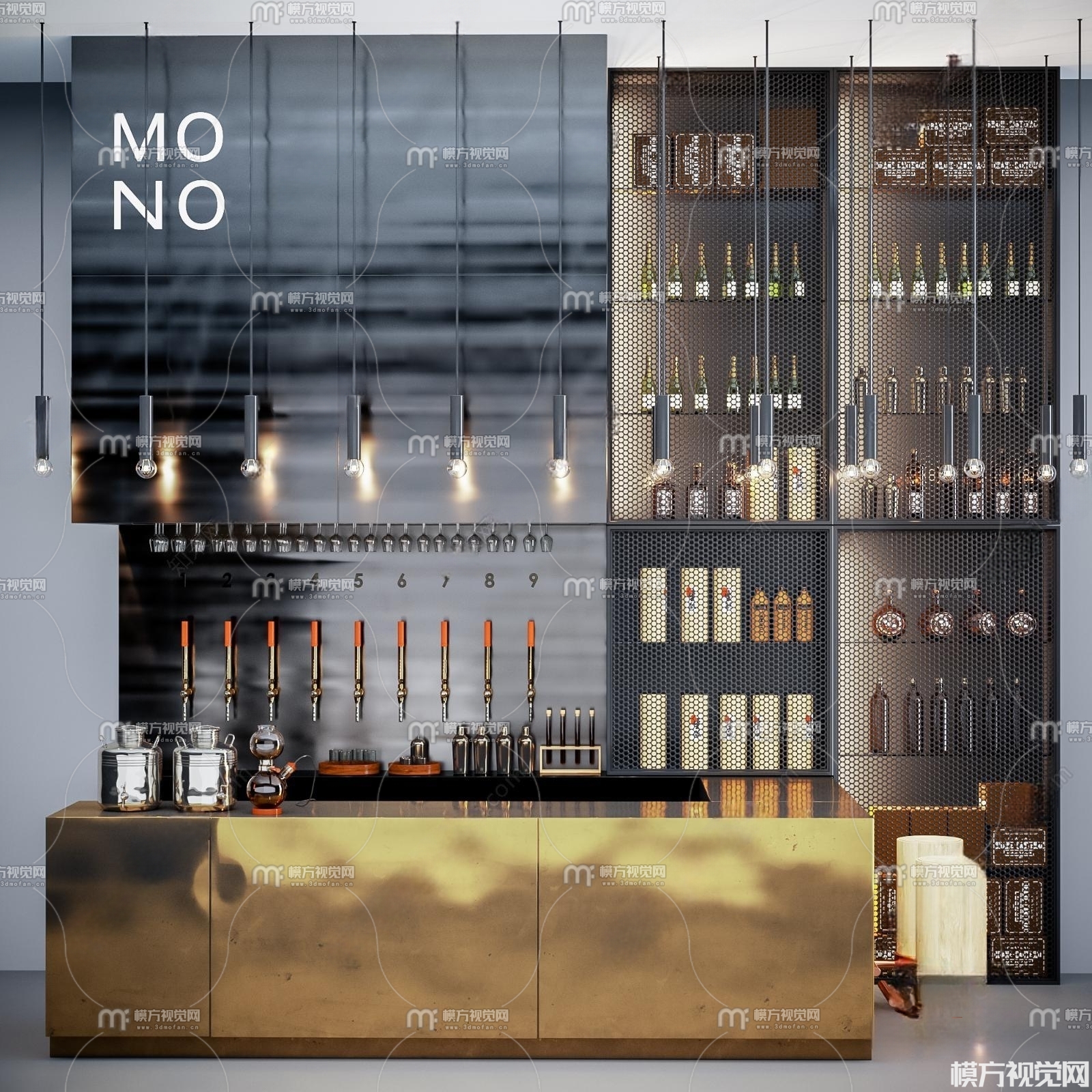 工业风咖啡吧台酒柜3D模型(ID:0009544)
