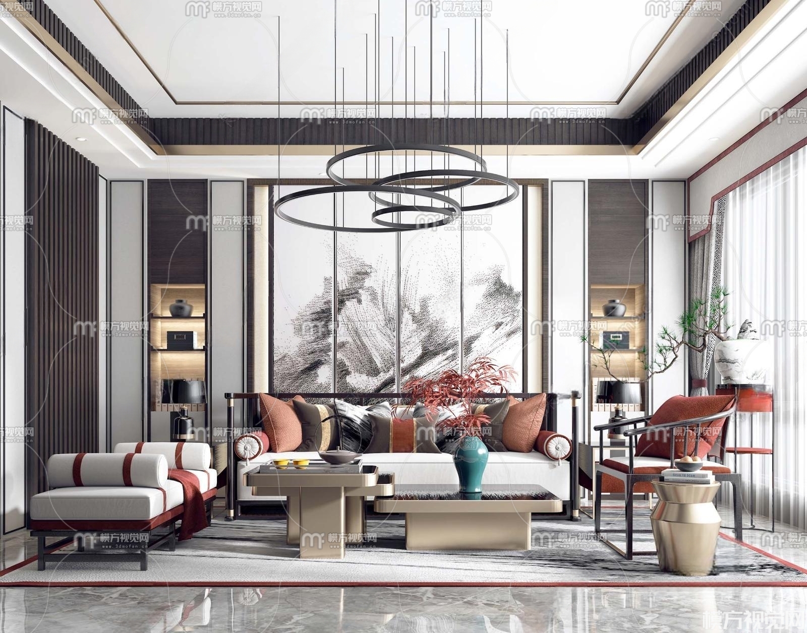 新中式客厅3D模型(ID:0009572)