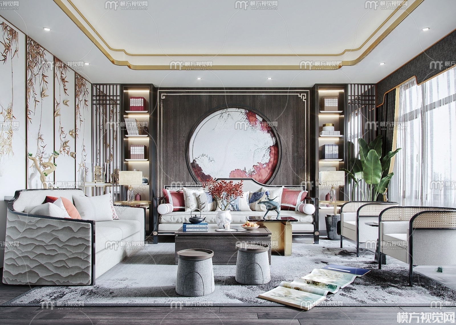 新中式客厅3D模型(ID:0009606)