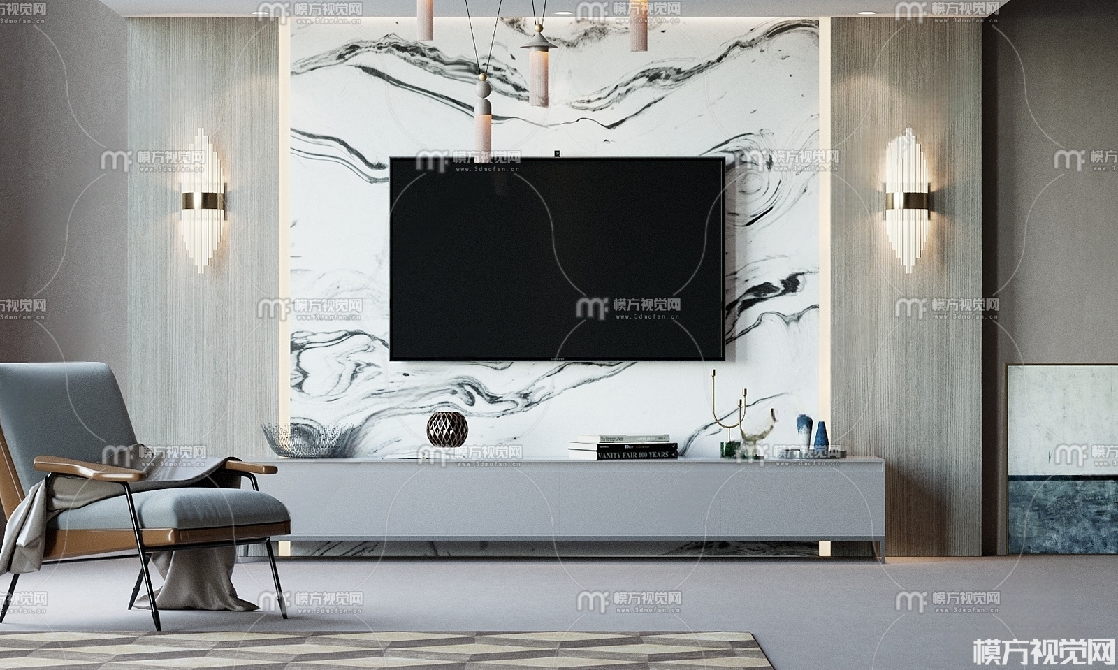 现代电视柜休闲椅3D模型(ID:0009607)