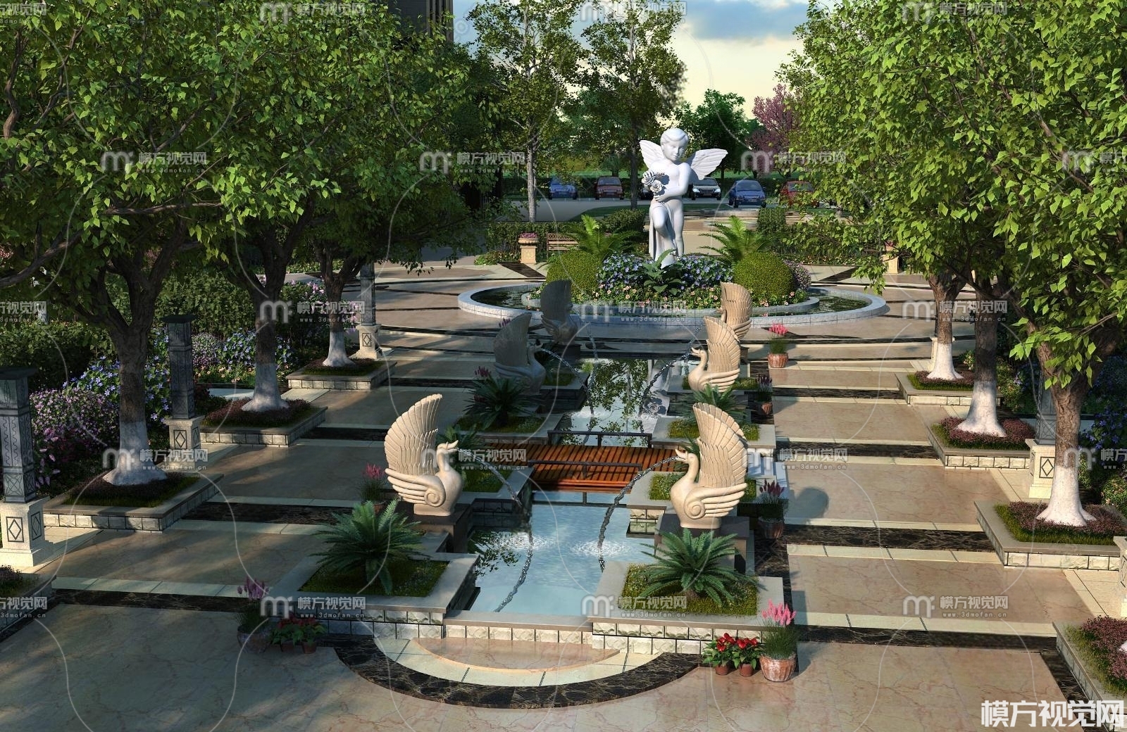 现代小区景观3D模型(ID:0009639)