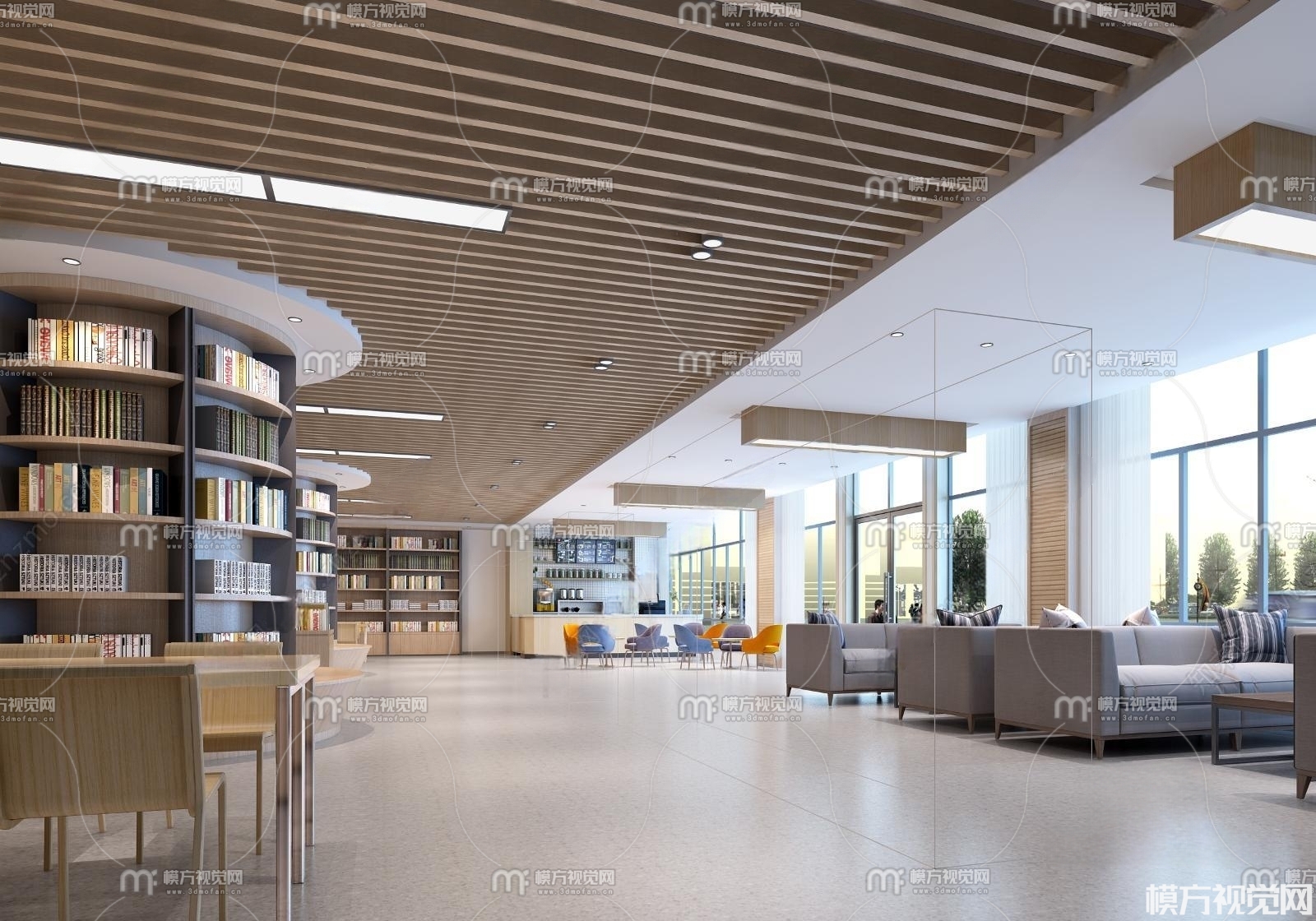 现代书吧 阅览室 图书室3D模型(ID:0009645)
