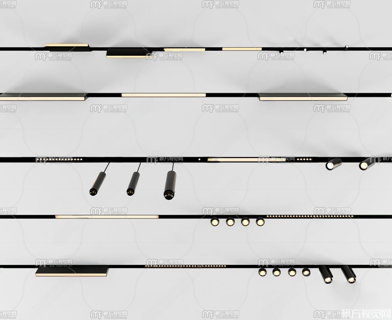 现代筒灯射灯轨道灯3D模型(ID:0009709)