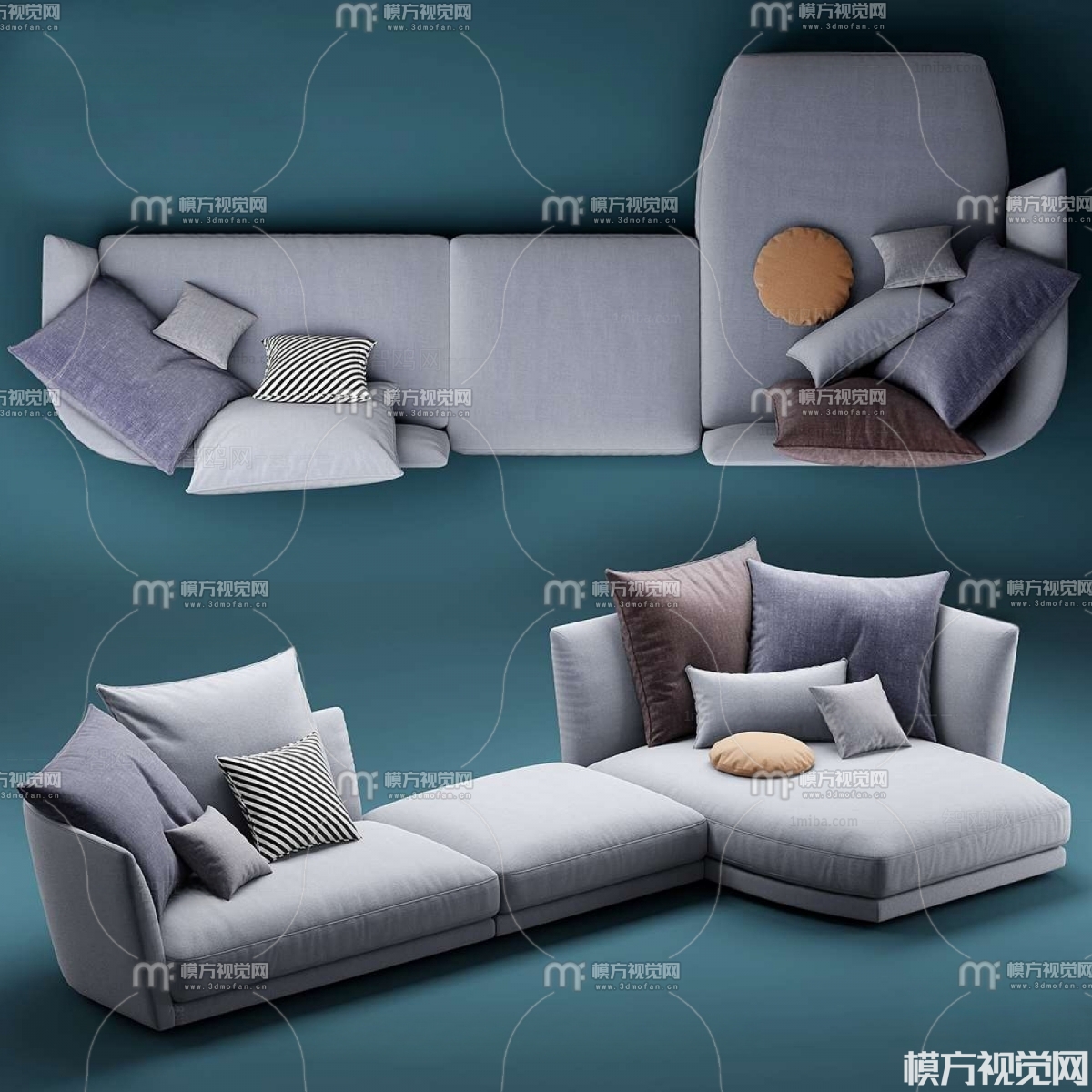 现代多人沙发 转角沙发3D模型(ID:0000976)