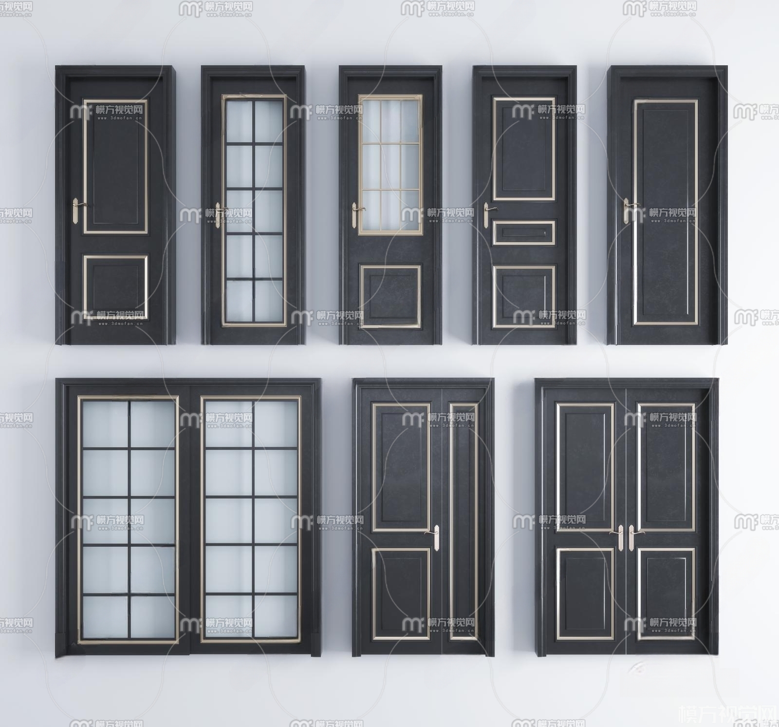 现代门 玻璃门 双开门 推拉门3D模型(ID:0009769)