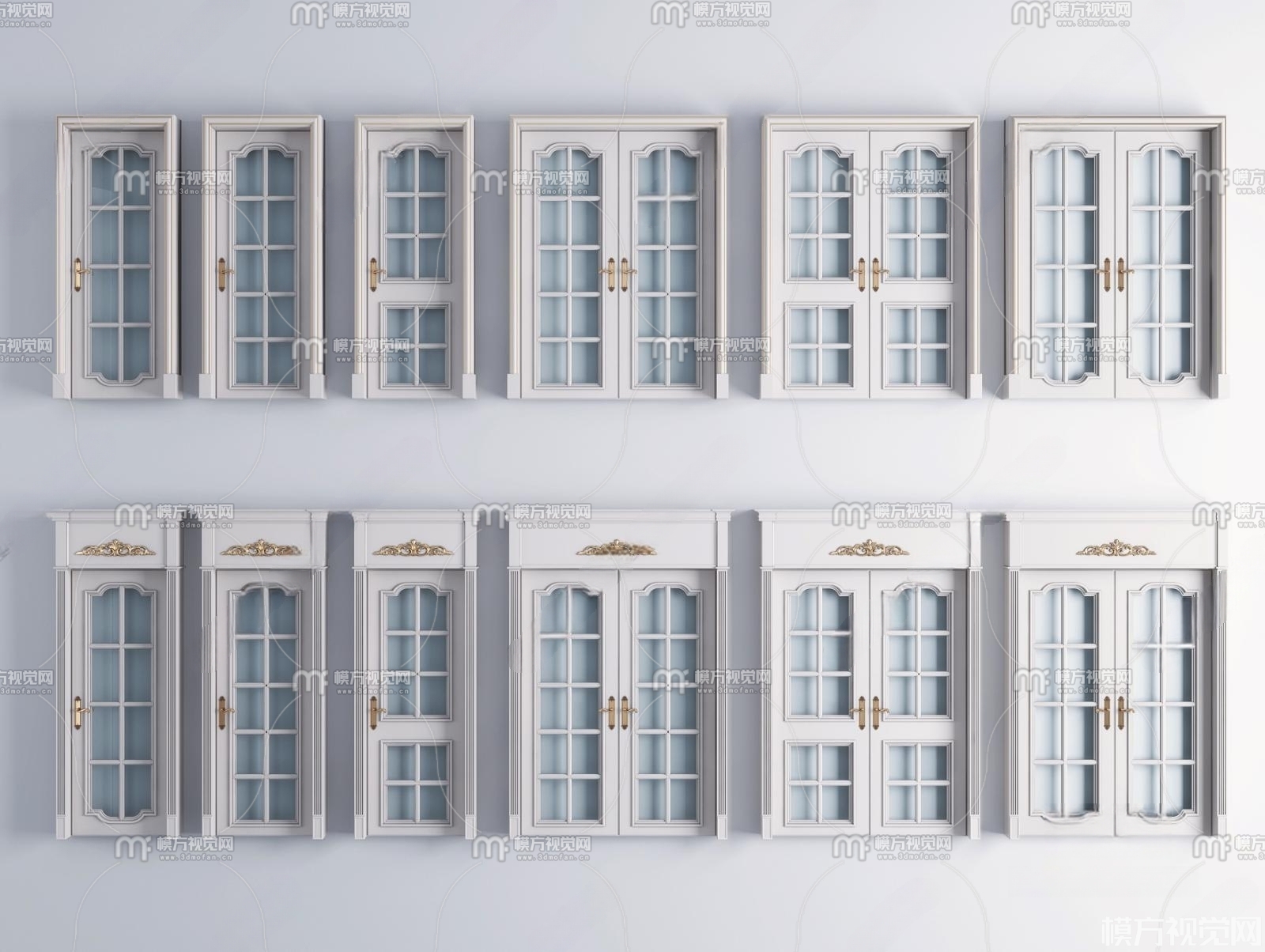 简欧玻璃门 双开门3D模型(ID:0009776)