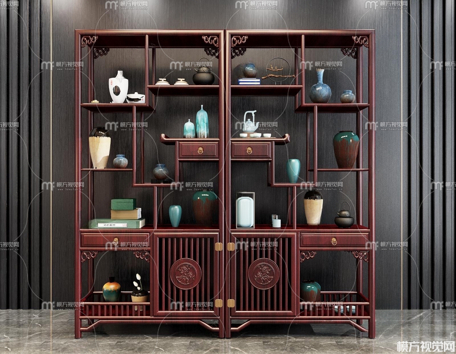 中式博古架3D模型(ID:0009777)