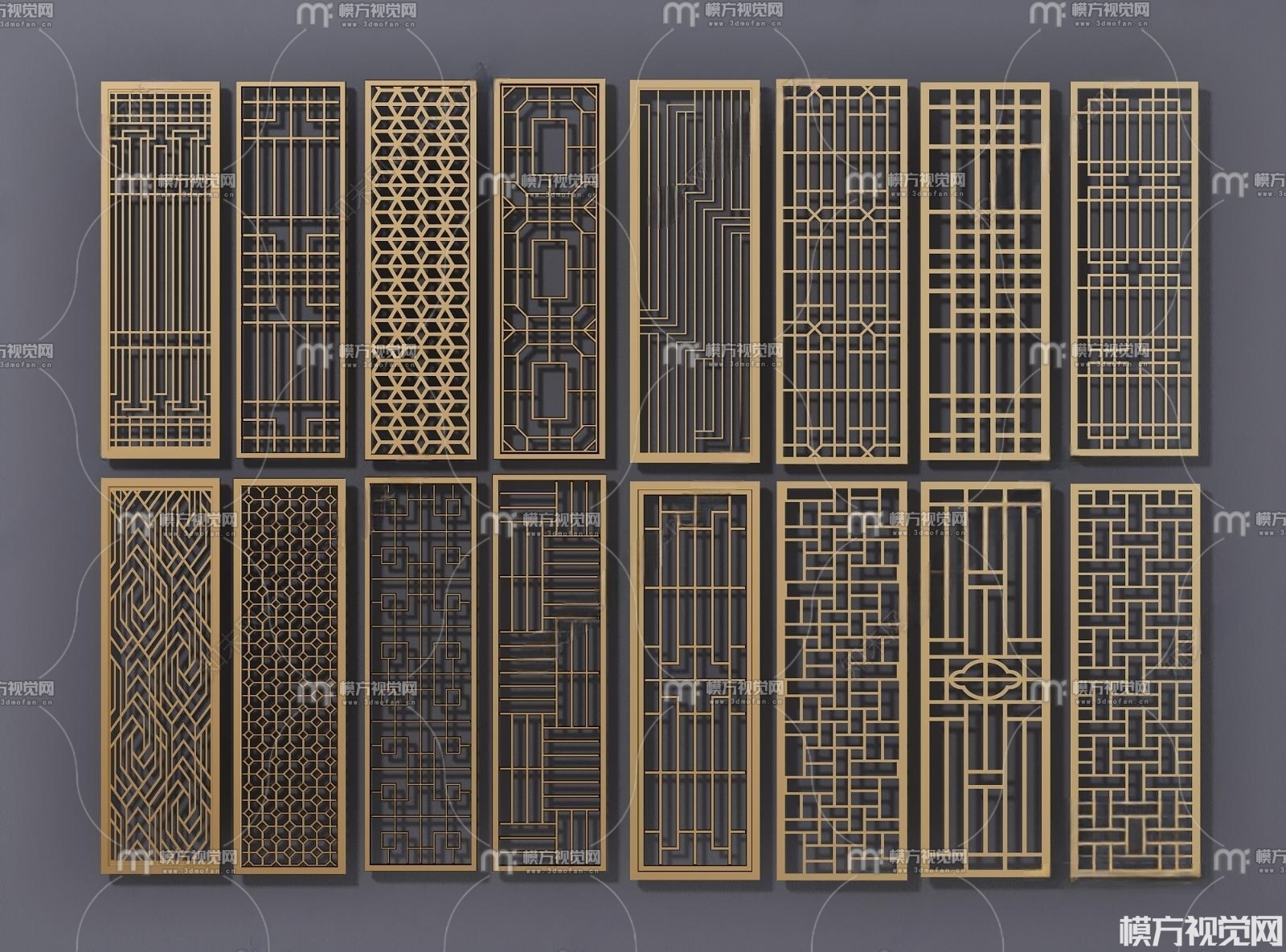 新中式金属隔断屏风3D模型(ID:0009803)