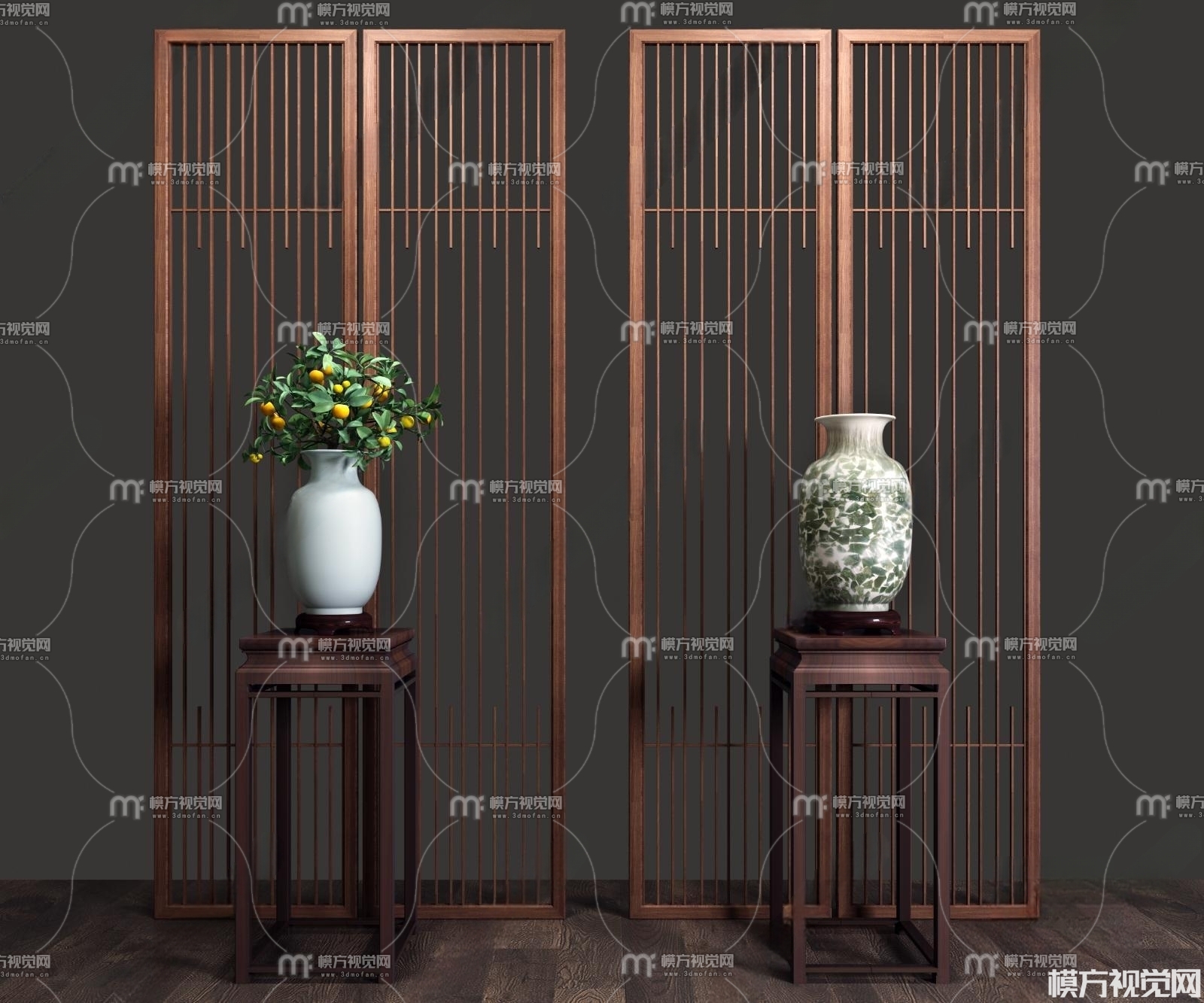 新中式屏风植物盆栽3D模型(ID:0009806)