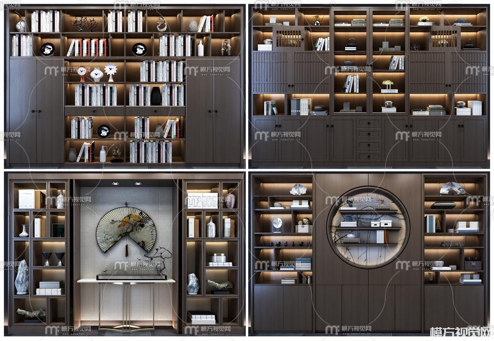 新中式书柜3D模型(ID:0009837)