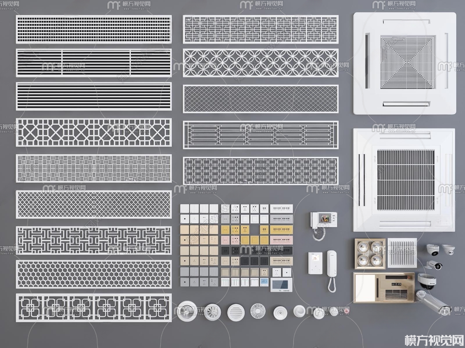 现代花格线条空调出风口插座开关3D模型(ID:0009922)
