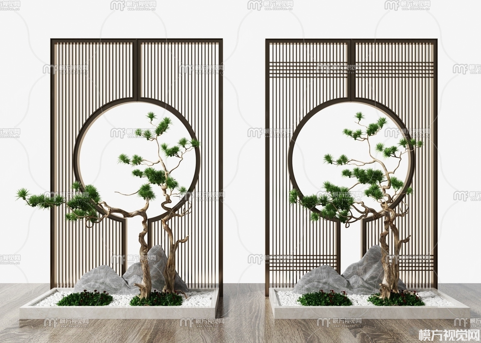 新中式屏风隔断旱景景观3D模型(ID:0009976)